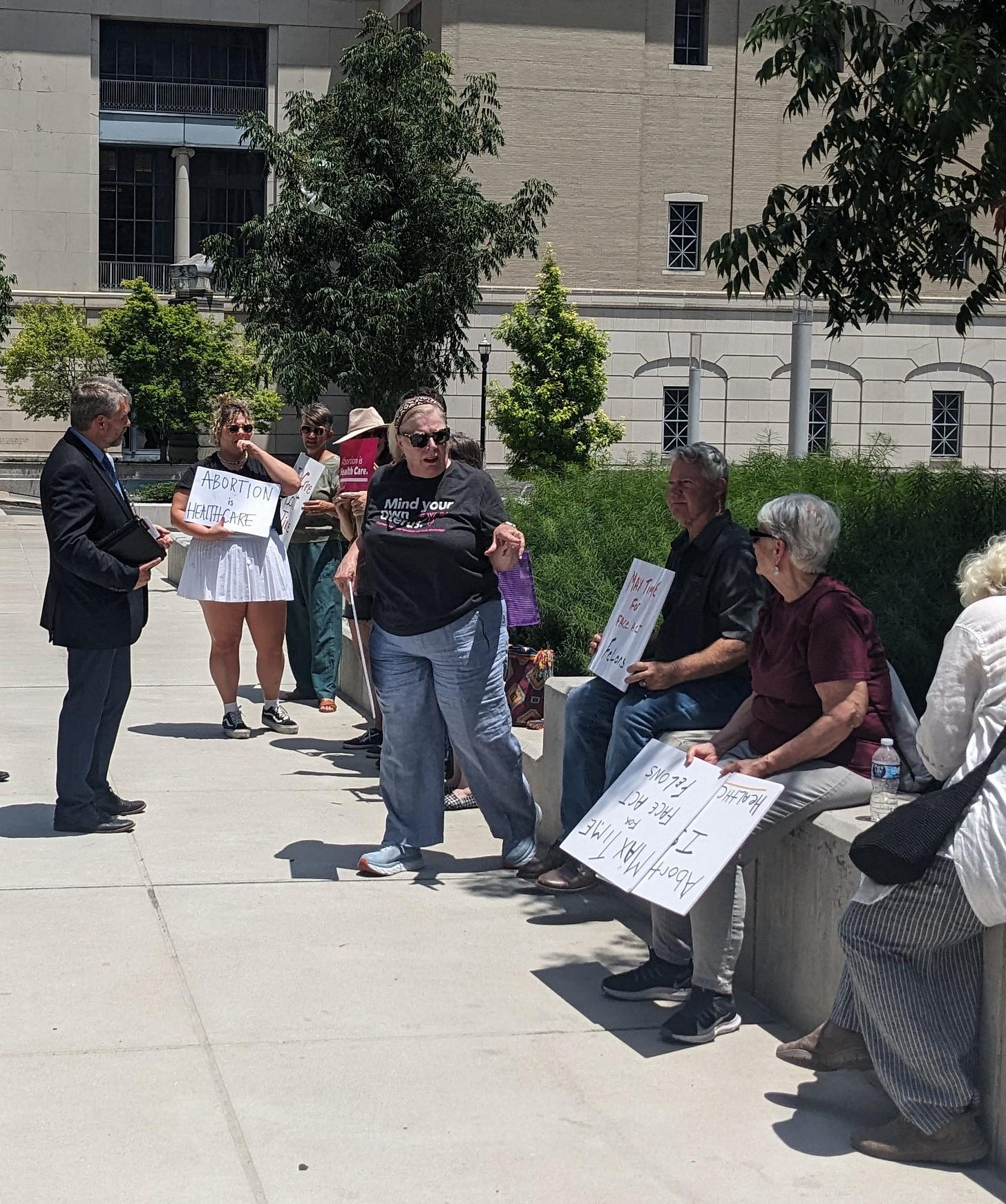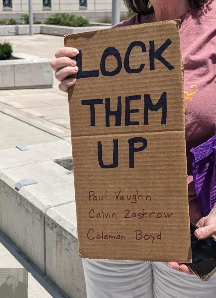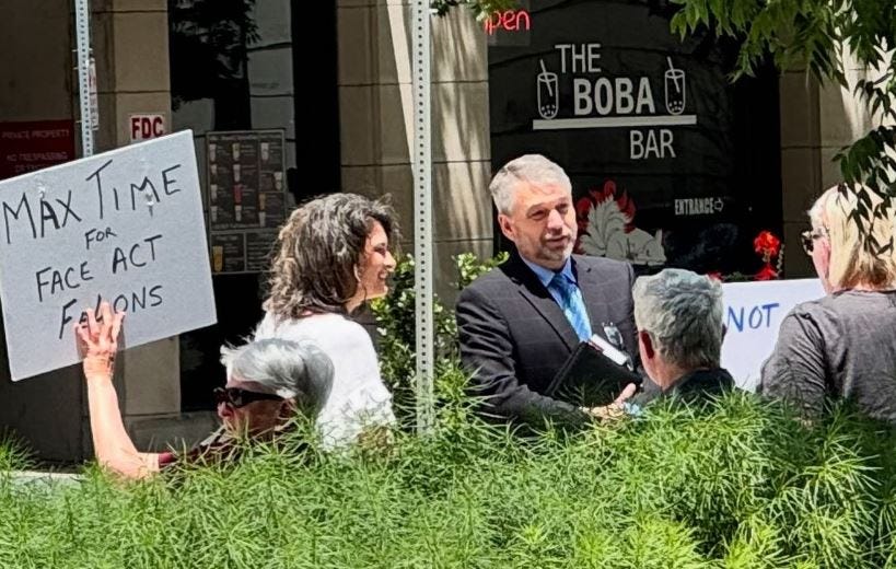 As we approached, we passed a line of pro-aborts, maybe 7 or so, who had pro-abortion signs and not nice things to say. “We know who you are! “We know what you did!” “We hope you get locked up for 10 years!” Their signs said, “Lock Them Up: Paul Vaughn, Cal Zastrow, Coleman Boyd” and “Max Time for FACE Act Felons!”
