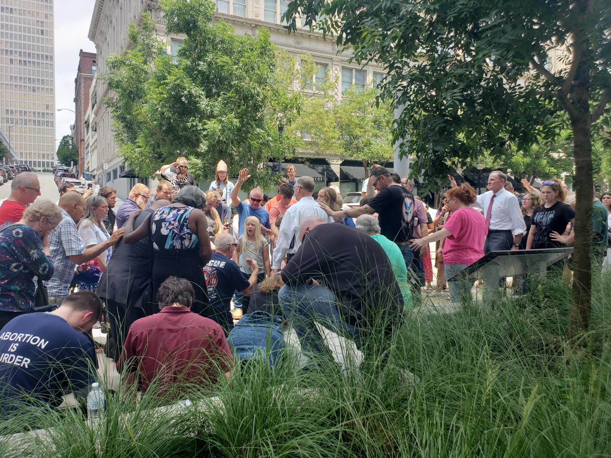 After we finished up our meeting, we headed to the court house. Approaching the courthouse we heard a crowd of people. There were hundreds of people standing outside on the court house plaza praying and singing.